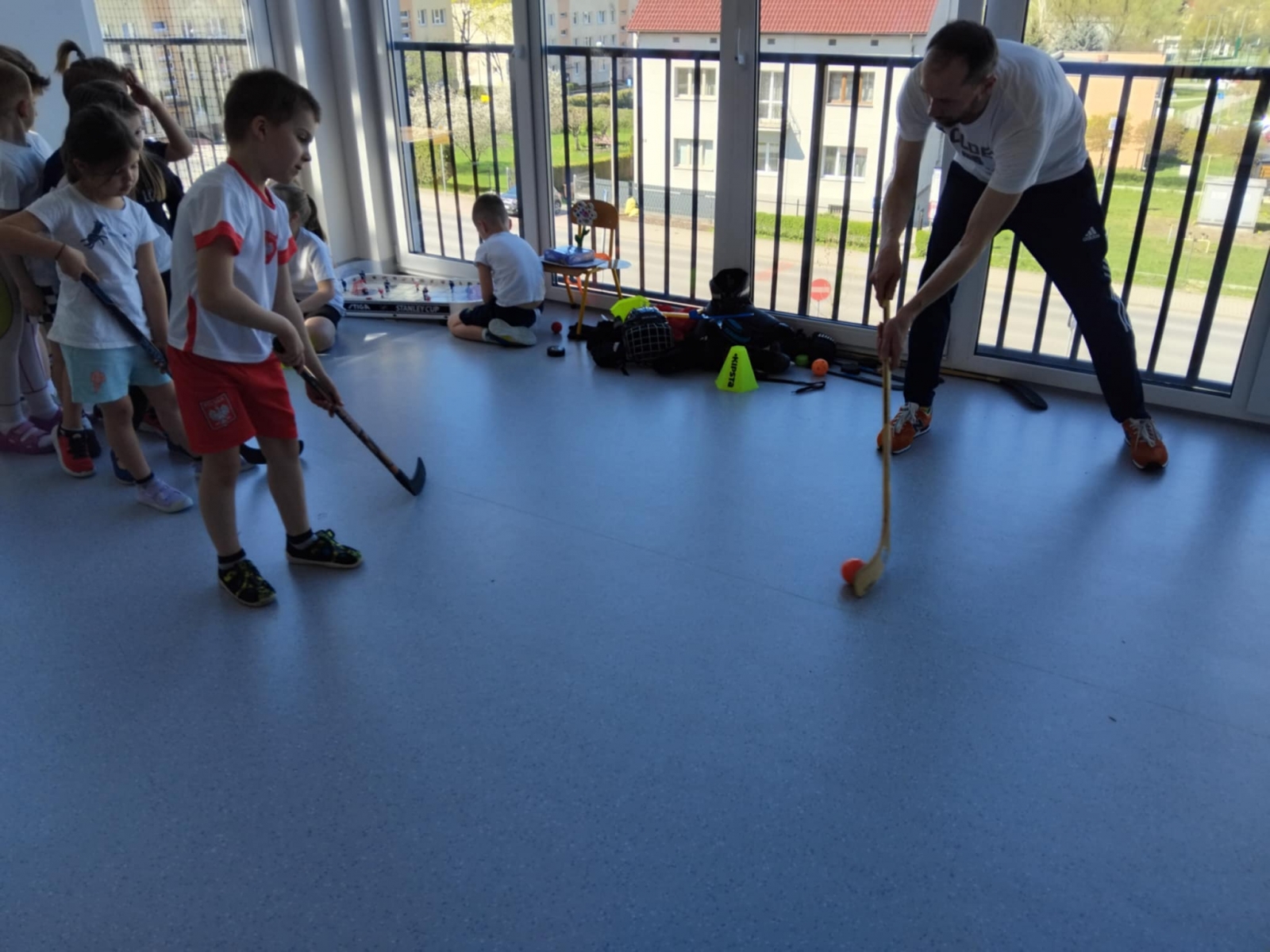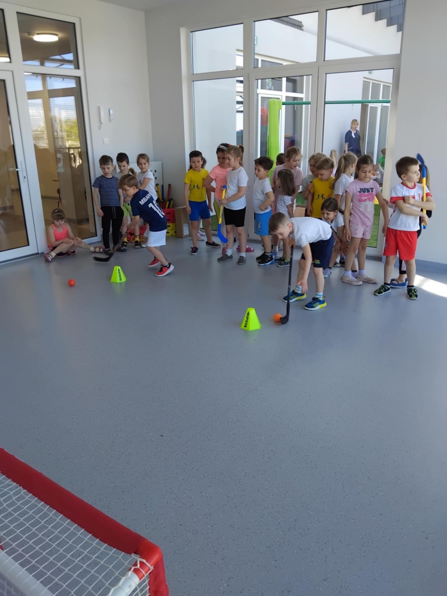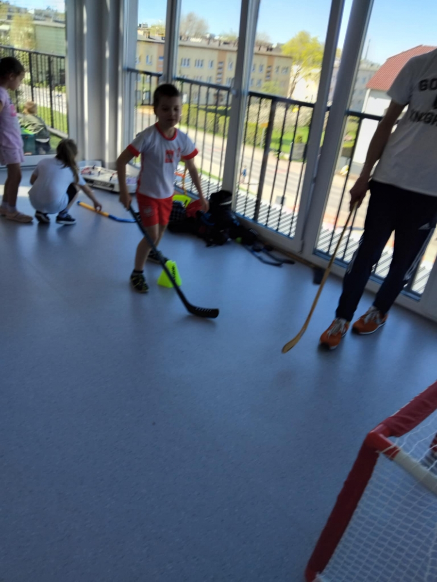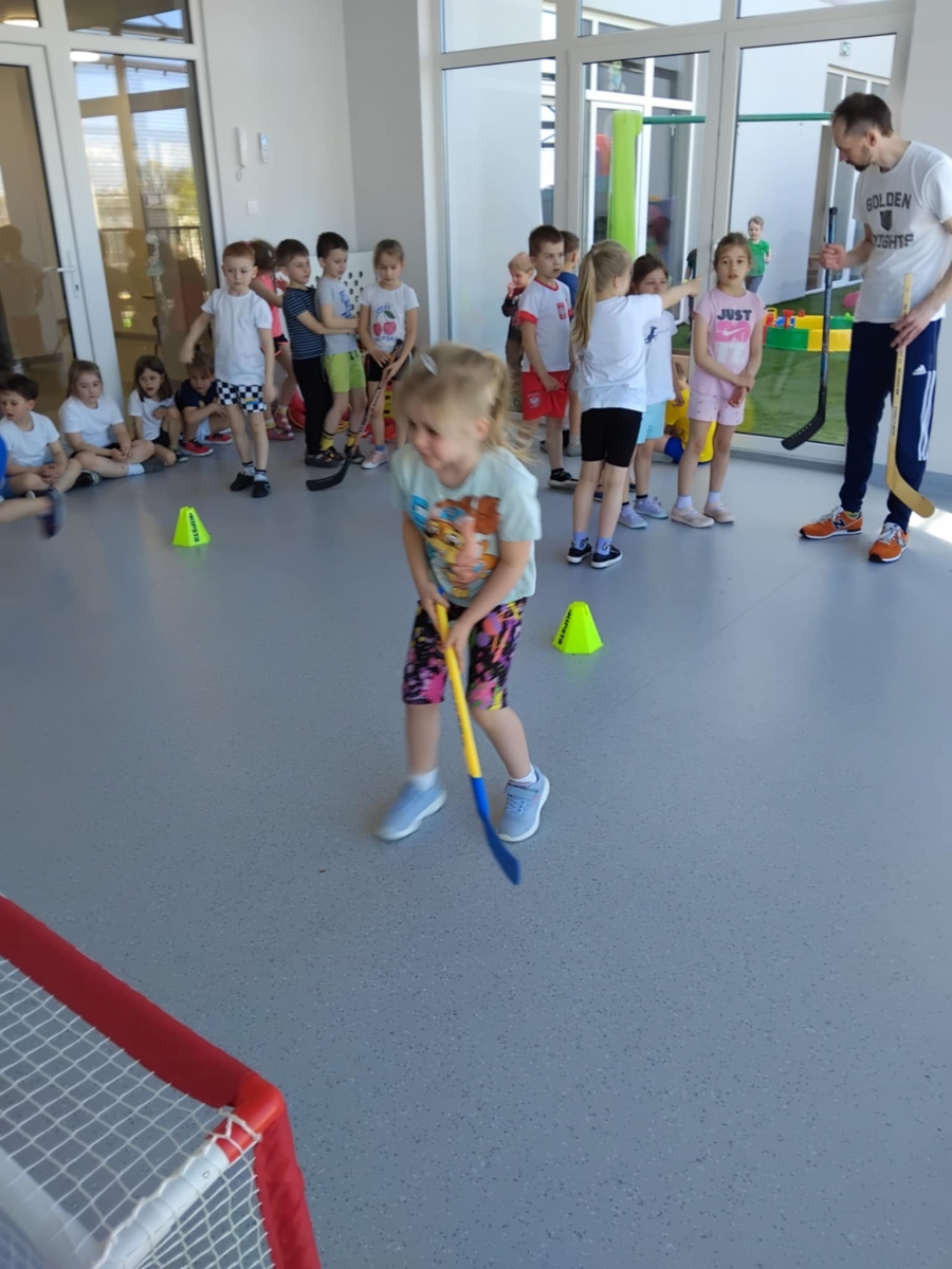Nasze przedszkole odwiedził tata Mai i Kai i opowiedział nam o swojej największej pasji – o hokeju. Dzieci poznały najważniejsze zasady gry w hokeja, dowiedziały się również jak wygląda sprzęt potrzebny do tej gry oraz miały okazję przymierzyć prawdziwy strój hokeisty. Nie obyło się również bez zajęć sportowych – rozgrzewki oraz ćwiczeń w podawaniu i strzelaniu do bramki.