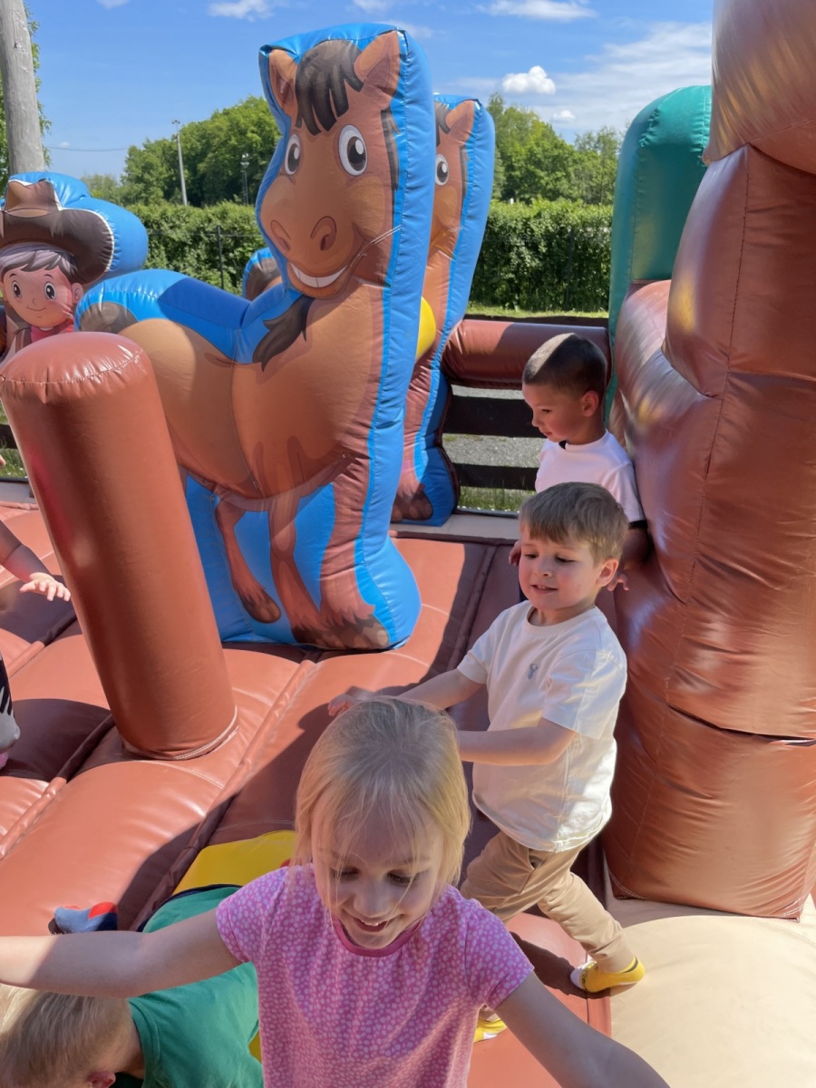 Kolejną atrakcją przygotowaną dla dzieci była zabawa w kowboje i poszukiwanie ukrytego złota…Na zakończenie, dzieci wzięły udział w zabawach na dmuchanych zjeżdżalniach 🙂 Pogoda nam dopisała, a przedszkolaki wróciły z wycieczki uśmiechnięte i zadowolone 🙂